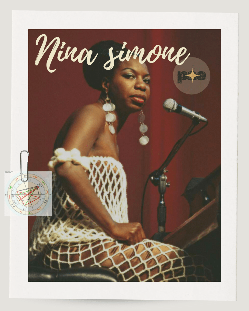 PAE açılımı ile bu defa şarkıcı, söz yazarı, müzisyen ve aktivist Nina Simone’nun doğum haritasını inceledim. Yine belirtmek isterim ki aşağıdaki açılım PAE’nin 1.aşaması olan beş kişisel gezegen, ev konumları ve yükselen okumasının kısa bir özetidir. Kişiye özel bir sistem olarak PAE’de verilen astrolojik bilgiler Nina’nın kendi doğasına aittir. Açılımın dili de bu şekilde özelleştirilmiştir.